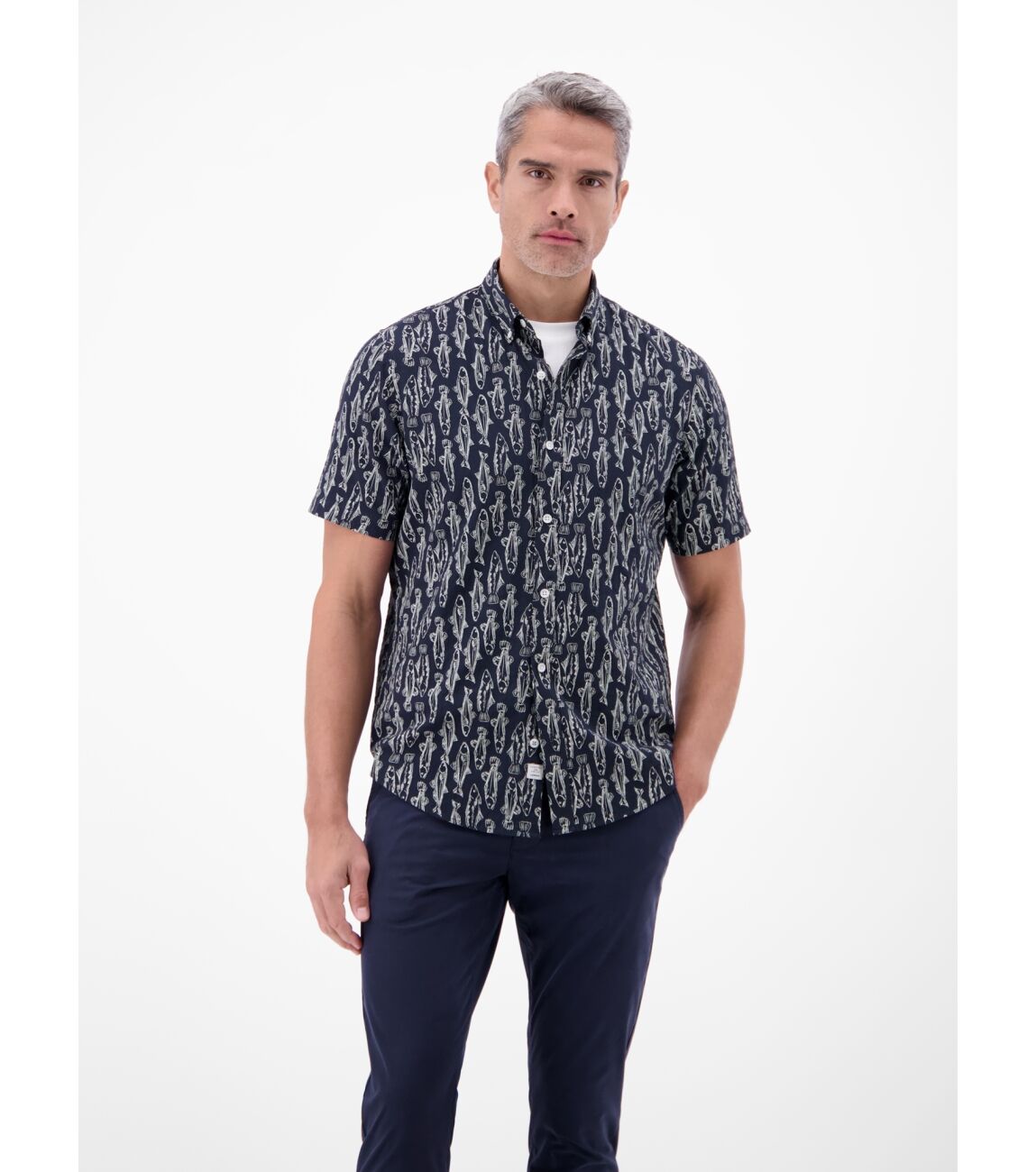 Lerros B.d. Seersucker 99/1% Co/Elas 485 CLASSIC NAVY