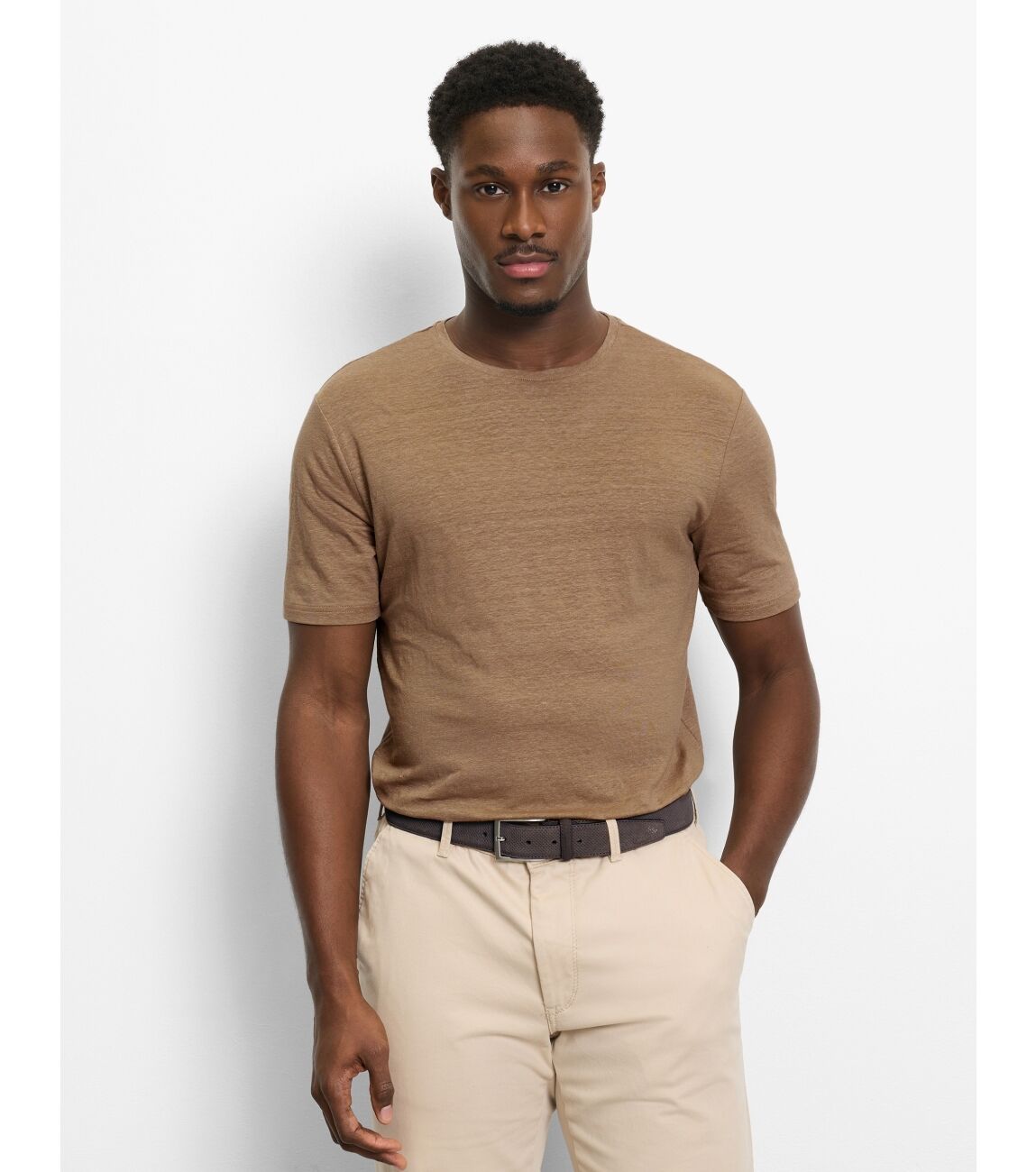 Olymp T-Shirt Casual Linen 95/5% Li/Elas 22 Natuur